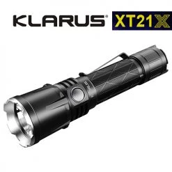 What’s included: Klarus XT21X flashlight, lithium-ion rechargeable battery, USB cable, pocket clip, nylon belt holster, wrist lanyard, and spare O-ring (charging adapters available separately)