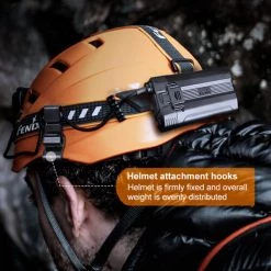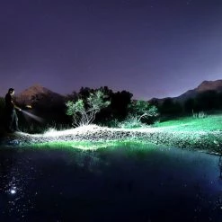 ▹ Flashlight (front) – 400 lumens, 2 hour runtime (hold switch for dimming)