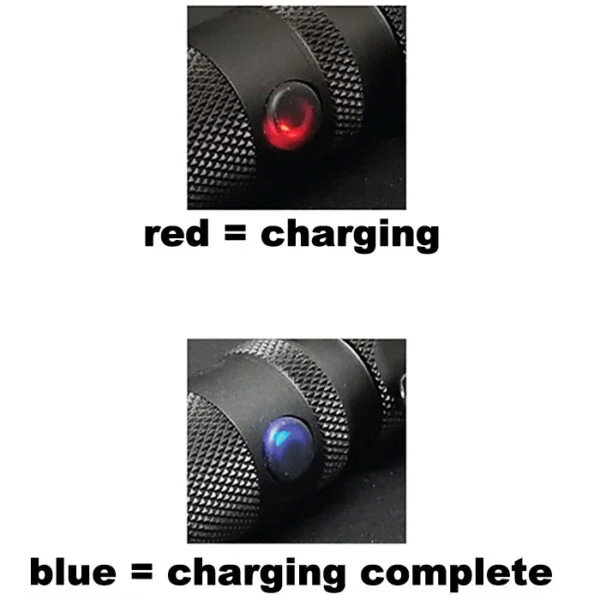 ▹ charging indicator (on side switch) changes from red to blue when charging is complete